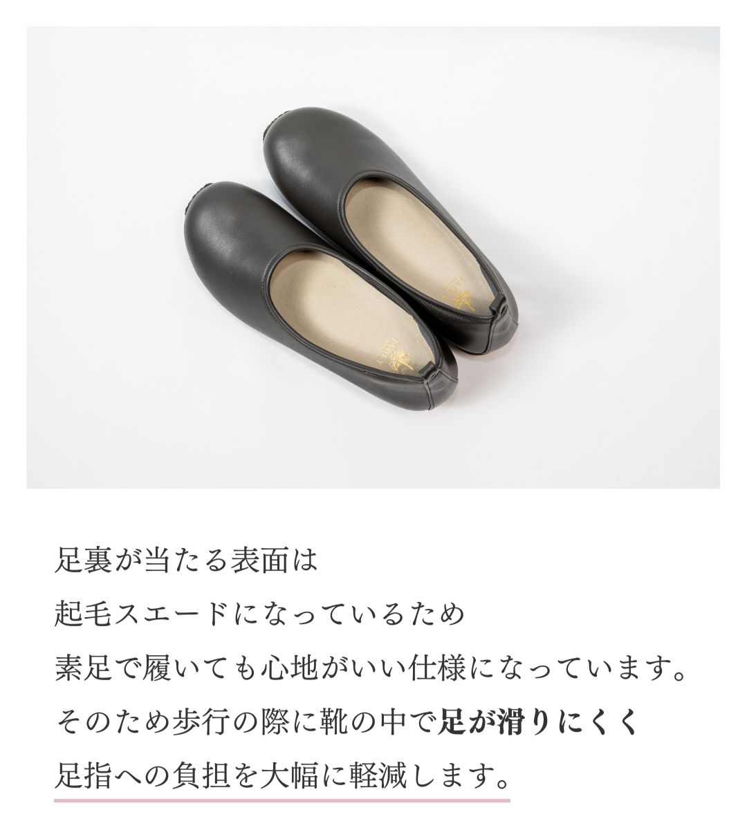 前ヒール高さ:約1.0cm(インソール含む)