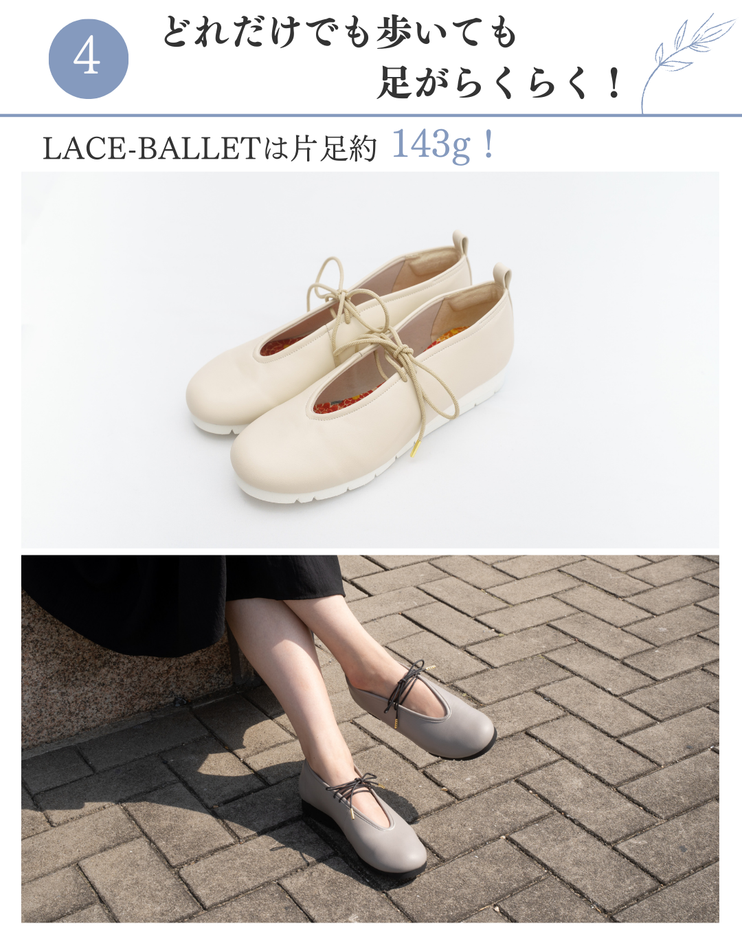 本革バレエシューズ LACE-BALLET/本革/日本製【翌日発送】